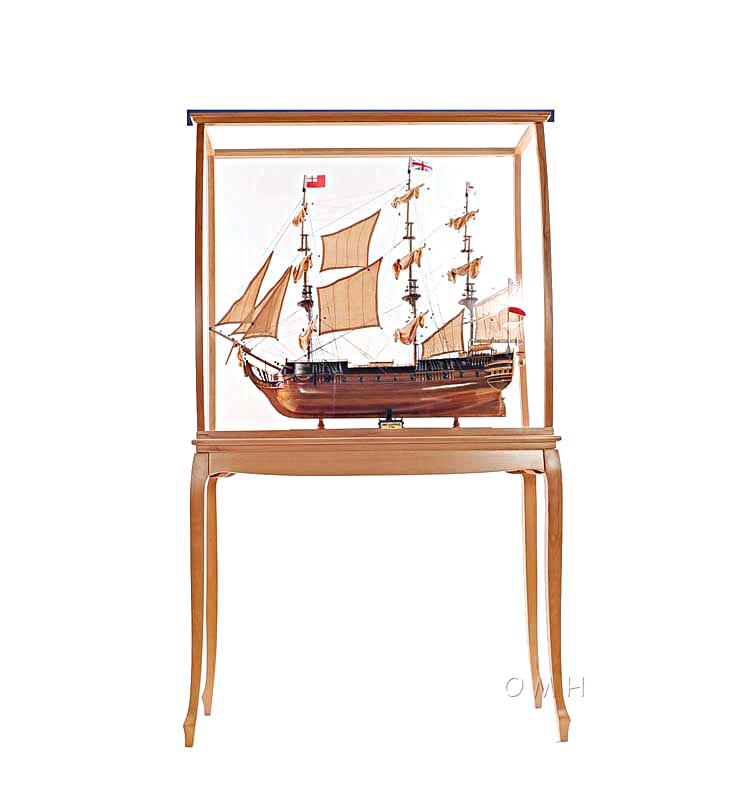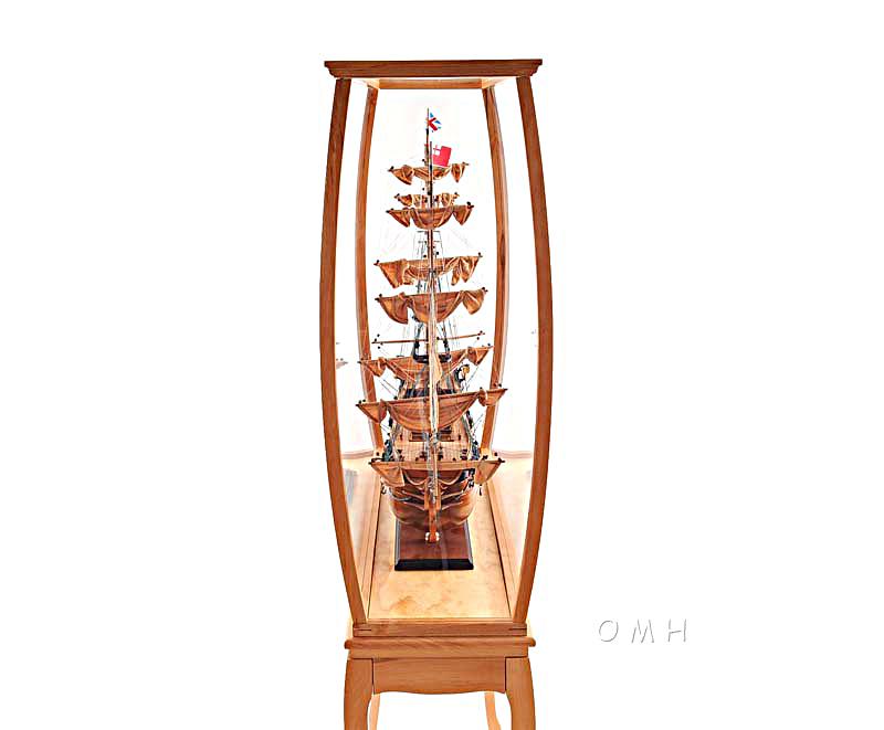 This beautiful display case was made out of hard wood with beautiful beach timber color. It has distinctive designs that add elegance and beauty when displayed in your home or office. The case comes with plexiglass panels on all sides. It features the curves on the sides of the case which enable it to accommodate models with wide yards. It is used to display all tall ship L80cm expert levels such as HMS Victory and USS Constitution... This case is very effective when it comes to preventing dust particles as well as keeping your valuable tall ship looking new and protected at all time. It is a must have for model ship enthusiasts or passionate collectors. This display case is packaged securely with thick foam layers inside a wooden crate and ship safely via trucking company. You can further save money and time when you purchase a tall ship model with the display case. This way we can pack the ship inside the display case and ship the entire package via trucking company. The maximum inside dimension is 38.25L x 13.25W x 36.5H inches.