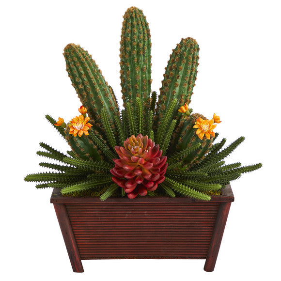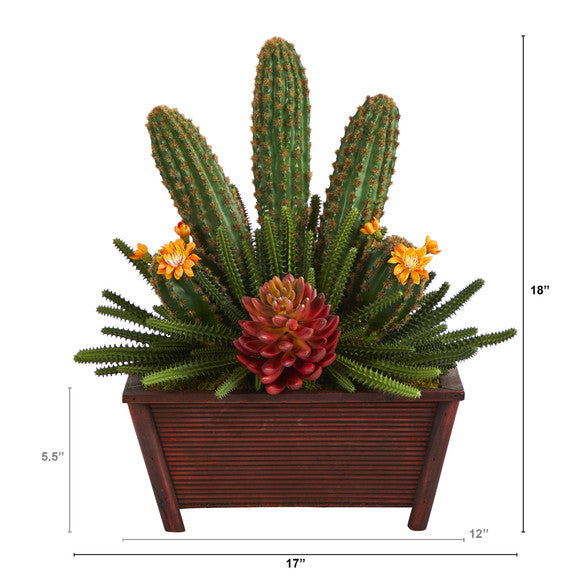 Nearly Natural 18" Mixed Cactus Succulent Artificial Plant in Planter