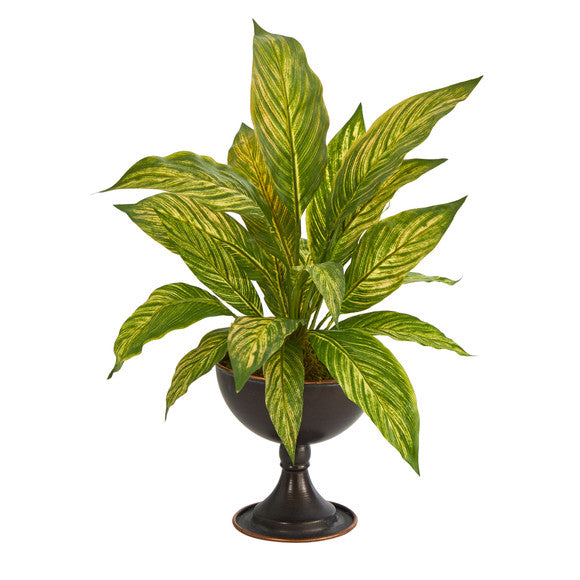 Nearly Natural 17" Musa Leaf Artificial Plant in Metal Chalice