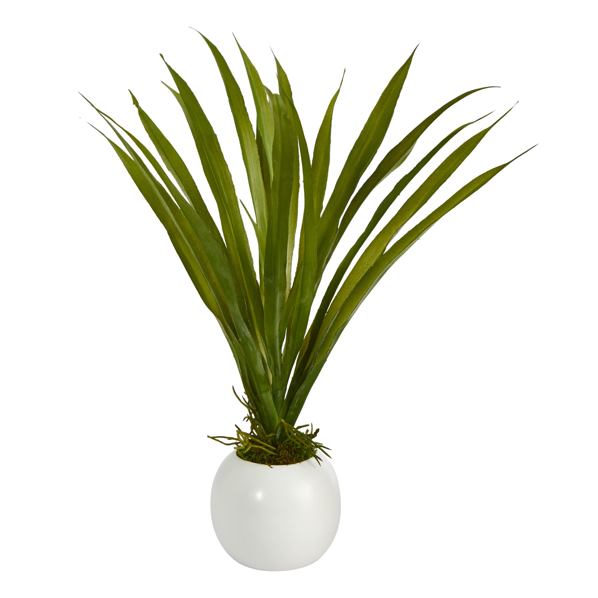 Inject sharp shoots of greenery to elevate even the tightest spaces with the help of this artificial plant boasting realistic looking grass foliage that fans up and outwards with a lifelike quality. Easy to display and requiring absolutely no maintenance, it stands 15" high from a decorative white planter.