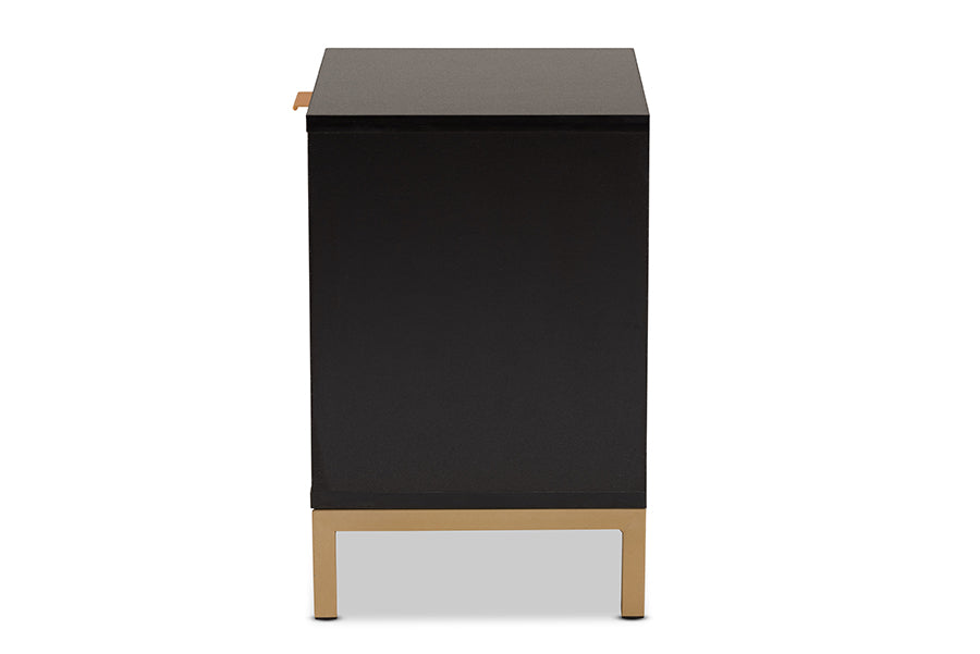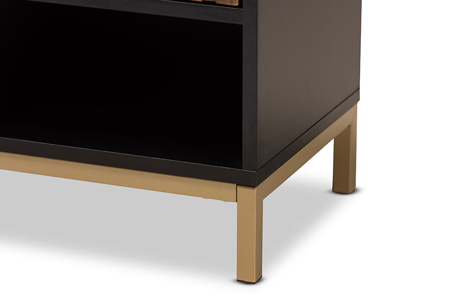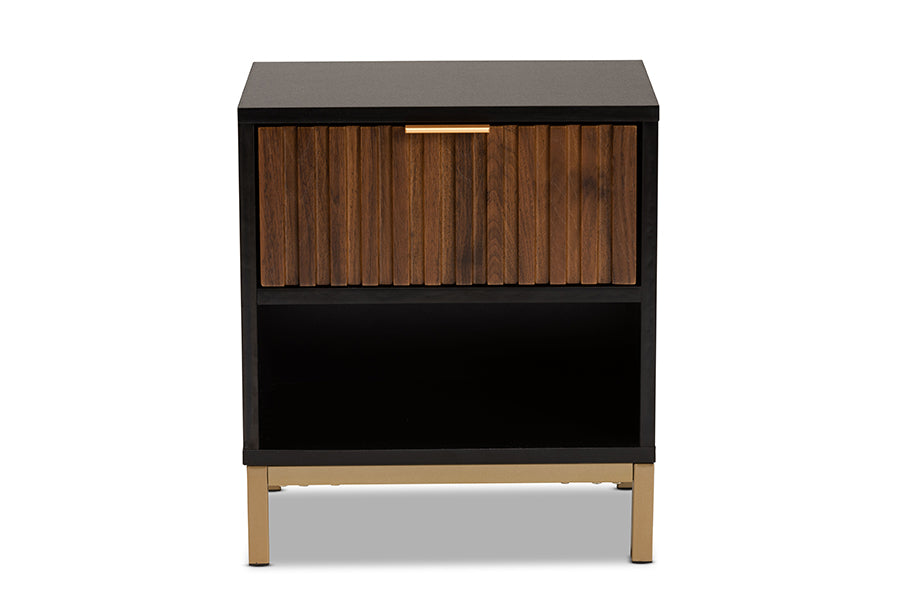 Baxton Studio Uriel Mid-Century Modern Transitional Two-Tone Natural Brown and Black Finished Wood and Brushed Gold Metal 1-Drawer Nightstand