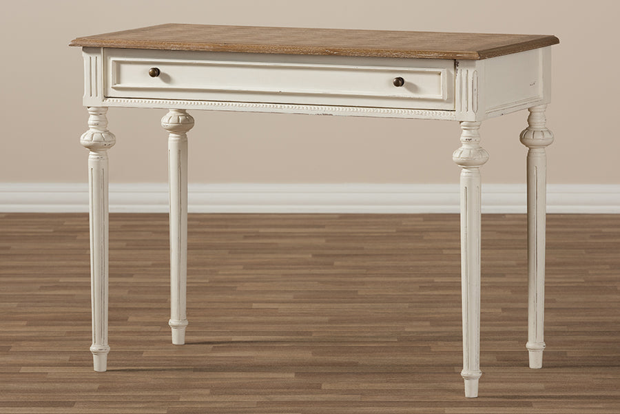 Baxton Studio Marquetterie French Provincial Weathered Oak and Whitewash Writing Desk