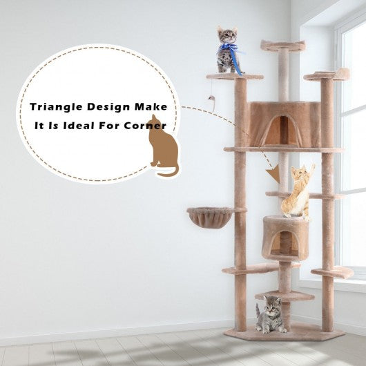 New 80" Cat Tree Condo Furniture Scratch Post Pet House Beige/Navy/Beige Paws-beige
