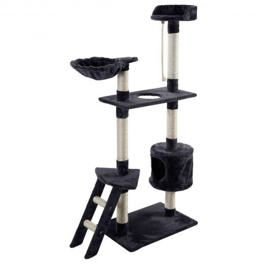 This 60" cat tree is suitable and ideal for kittens or cats of all ages to play and enjoy themselves. It will give lovely pets a comfortable house. The heavy-duty structure provides more safety for pets' playing scratching exploring or relaxing. Beautifully designed with fun activities let your cat scratch climb jump and often used specifically to prevent scratching and lounging on other household items. The cat tree contains other desirable items to encourage scratching such as sisal rope. Welcome! High quality with competitive price can be realized here! Don't hesitate to buy it! Comfortable fabrics elegant design Cats use as beds hideaways and playhouses Beautifully designed with fun activities for your cat to scratch climb jump often used specifically to prevent scratching and lounging on other household items Suitable for cats of all ages and activity levels Installation is very convenient Note: Keep the cat tree dry Keep the cat tree clean for your beloved cat Pay attention to the fire