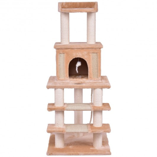 52" Tower Condo Scratching Post Cat Tree w/ Rope and Mouse-Beige