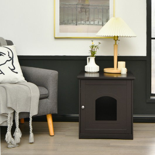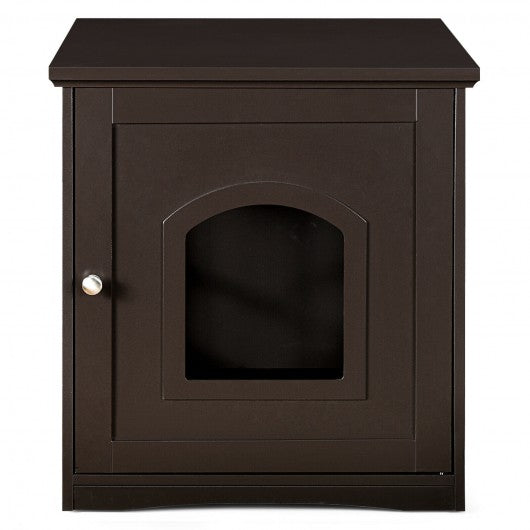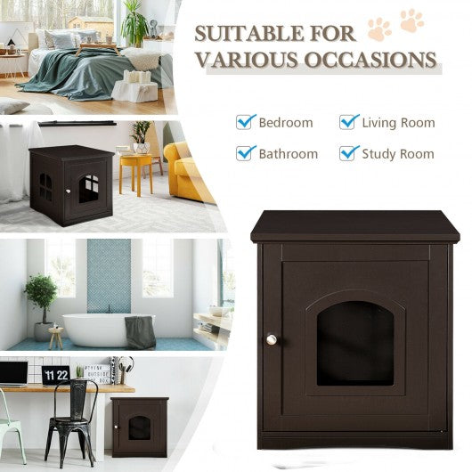 Everyone needs a privacy room to answer the call of nature so does your cat. This cat litter box enclosure can solve this problem. Two windows are nice decoration making this cat house look cute and also help to circulate air which is beneficial to avoid moisture. Open the door you can put cat litter box up to 17" x 19" . By the way there is an opening on the door for cat' s freely getting in or out. Moreover this product is made of high-quality MDF with fine finish which endow it with sturdy frame and waterproof surface. You can also use it as an end table in your living room bedroom or bathroom to organize things. Clean it with soft cloth to keep it in good condition. If you are looking for a cat house like this do not hesitate to place an order! Smooth and waterproof surface ensure you can clean it easily Simple part and detailed instruction help you can assemble it quickly Two cross windows are perfect decoration and also helpful to circulate air Superb material covered with paint endow it good quality and long lifetime Cat hole on the door allows cat to come and go freely without problems Magnetic door with knob provides convenience for opening and closing Spacious inner space allow you can put cat litter box up to 17" x 19" Multi-purpose cat house with a stylish look and modern design can decorate your room