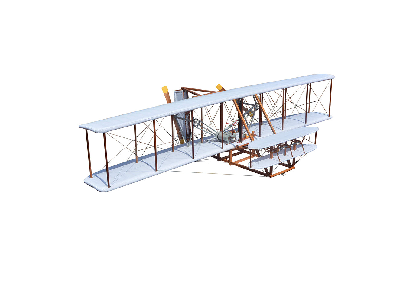 The Wright Flyer (often retrospectively referred to as Flyer I or 1903 Flyer) was the first successful heavier-than-air powered aircraft. It was designed and built by the Wright brothers. They flew it four times on December 17, 1903, near Kill Devil Hills, about four miles south of Kitty Hawk, North Carolina. Today, the airplane is exhibited in the National Air and Space Museum in Washington D.C. The U.S. Smithsonian Institution describes the aircraft as "the first powered, heavier-than-air machine to achieve controlled, sustained flight with a pilot aboard." The flight of Flyer I marks the beginning of the "pioneer era" of aviation. This is a 1:10 highly accurate model with the following dimension: 24.5 inches wide x 47.5 inches Length x 10.25 inches height. It was built using cedar wood to provide a sturdier overall structure. It's a great model for any home or office decoration or for a passionate aviation collector. Features: - Sturdy & beautiful detailed western red cedar frame - Fabric wings over the wooden frame - Detailed rigging - 100% built to scale by hand according to the original plan