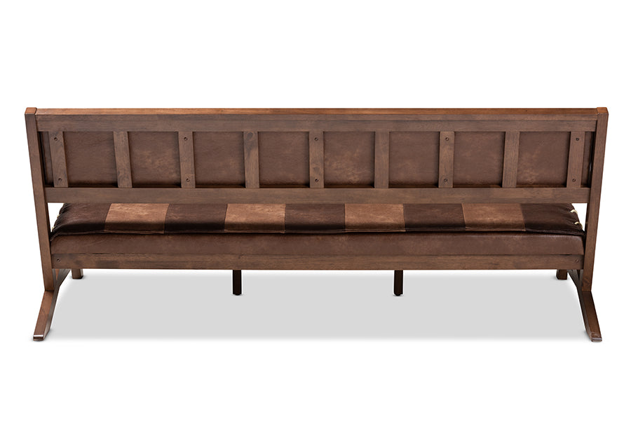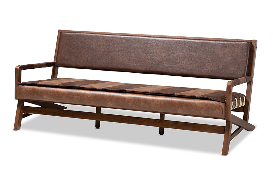 Baxton Studio Rovelyn Rustic Brown Faux Leather Upholstered Walnut Finished Wood Sofa