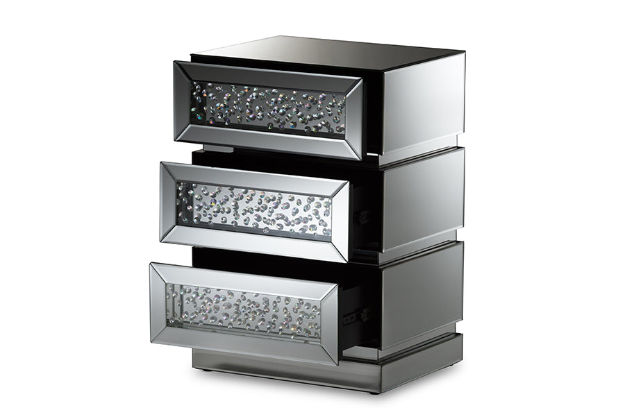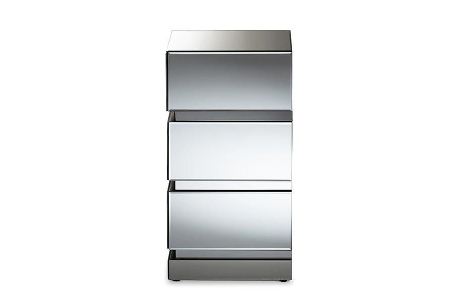 Baxton Studio Sabrina Hollywood Regency Glamour Style Mirrored 3-Drawer Nightstand