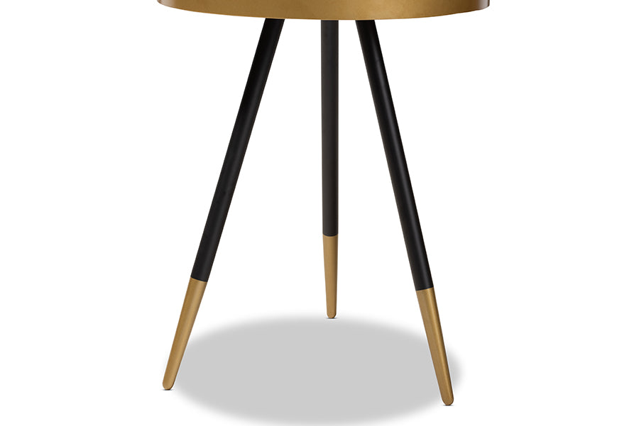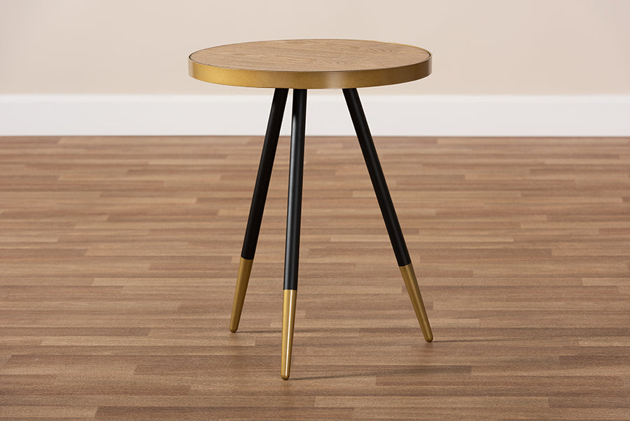 Baxton Studio Lauro Modern and Contemporary Round Walnut Wood and Metal End Table with Two-Tone Black and Gold Legs