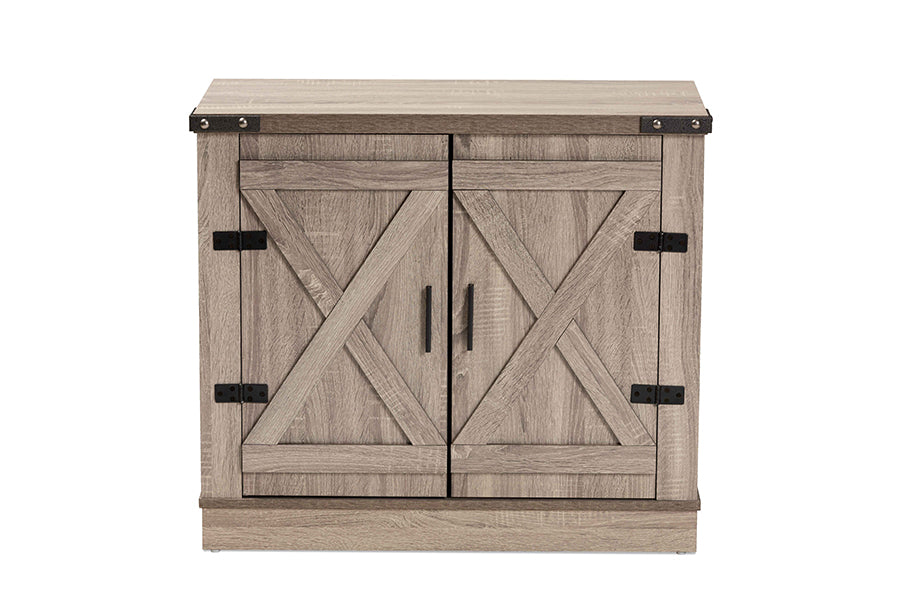 Baxton Studio Wayne Modern Contemporary Farmhouse Oak Brown Finished Wood 2-Door Shoe Storage Cabinet