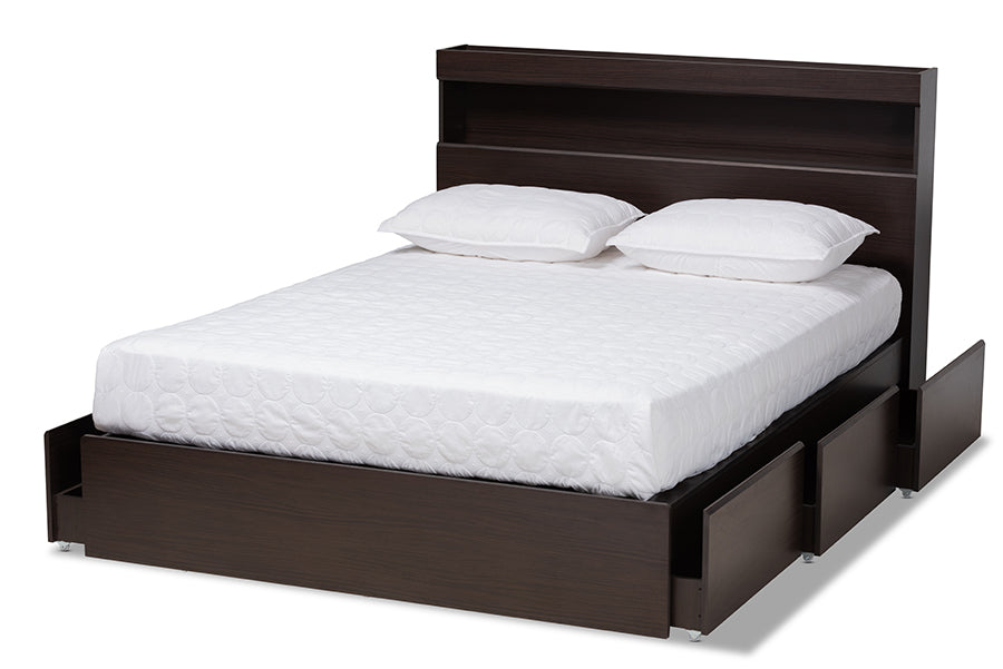 Baxton Studio Blaine Modern and Contemporary Dark Brown Finished Wood Queen Size 6-Drawer Platform Storage Bed