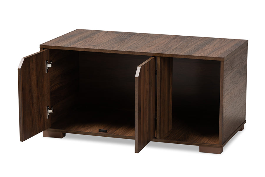 Baxton Studio Jasper Modern and Contemporary Walnut Brown Finished 2-Door Wood Cat Litter Box Cover House