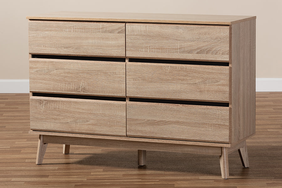 Baxton Studio Miren Mid-Century Modern Light Oak and Dark Grey 6-Drawer Dresser