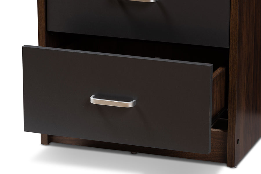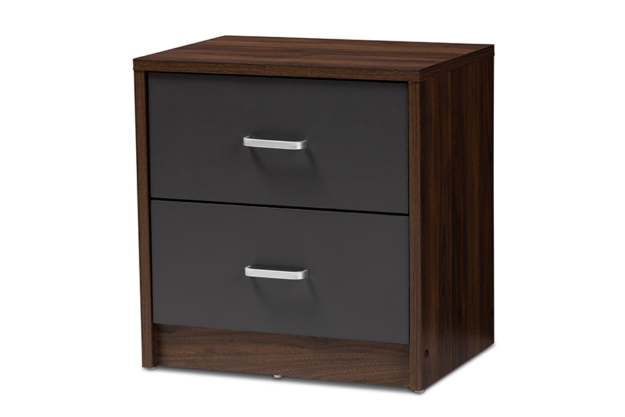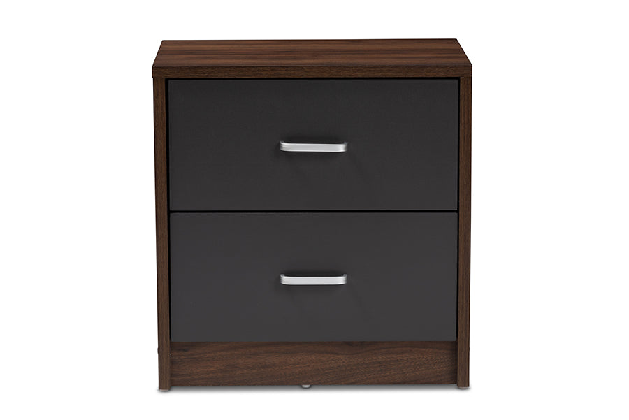 Baxton Studio Hansel Modern and Contemporary 2-Drawer Dark Brown and Dark Grey Finished Nightstand