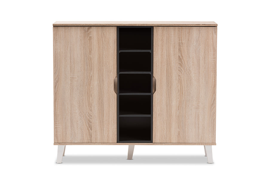 Baxton Studio Adelina Mid-Century Modern 2-door Oak and Grey Wood Shoe Cabinet