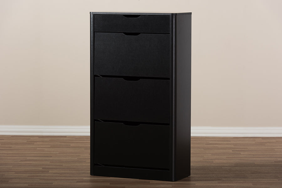 Baxton Studio Cayla Modern and Contemporary Black Wood Shoe Cabinet