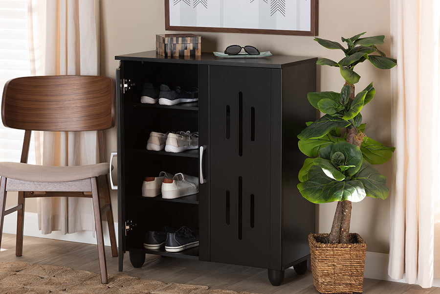Baxton Studio Renley Modern and Contemporary Espresso Brown Finished Wood 2-Door Shoe Storage Cabinet