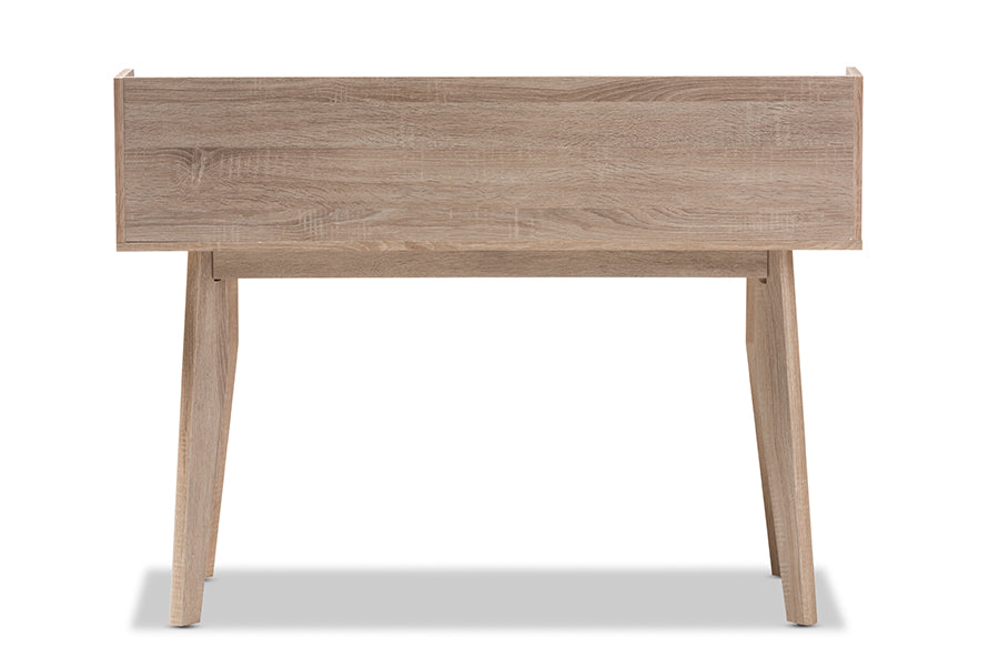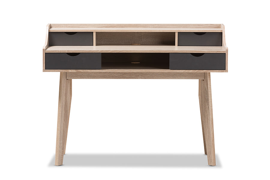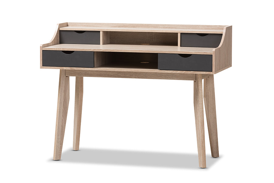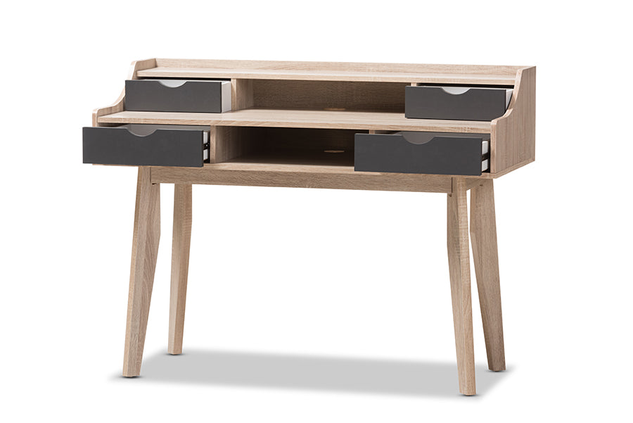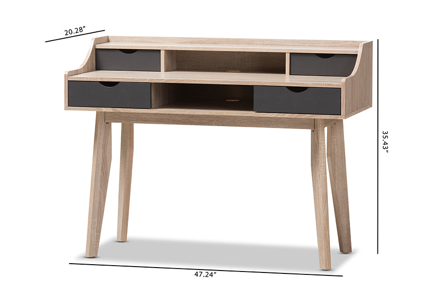Baxton Studio Fella Mid-Century Modern 4-Drawer Oak and Grey Wood Study Desk