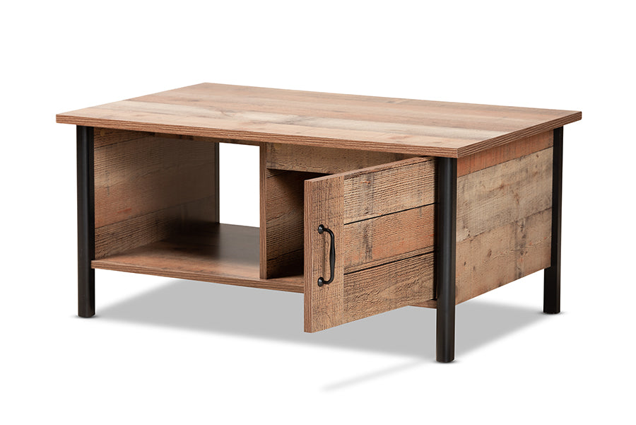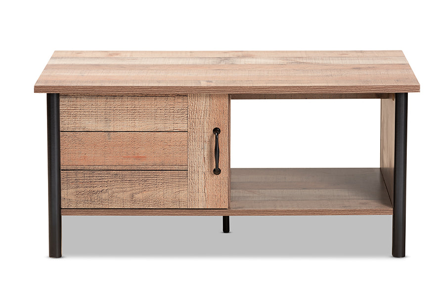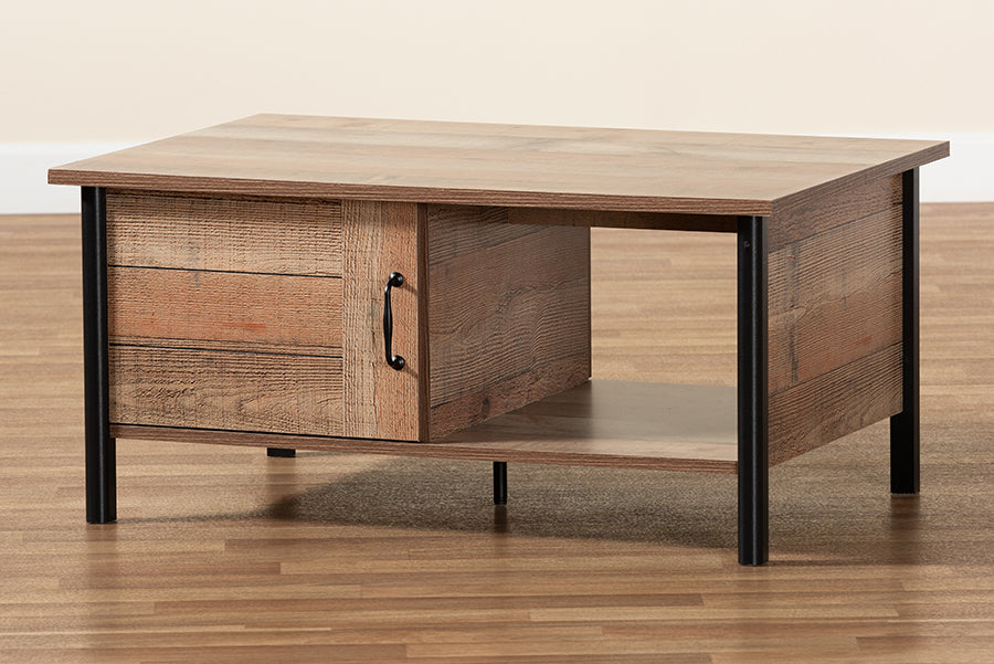 Baxton Studio Vaughan Modern and Contemporary Two-Tone Rustic Oak Brown and Black Finished Wood Coffee Table