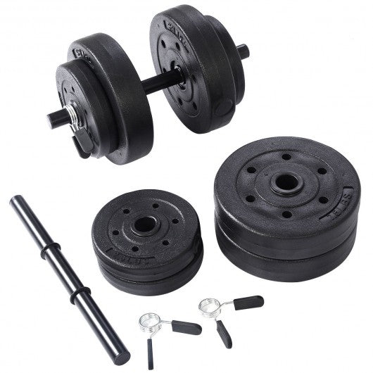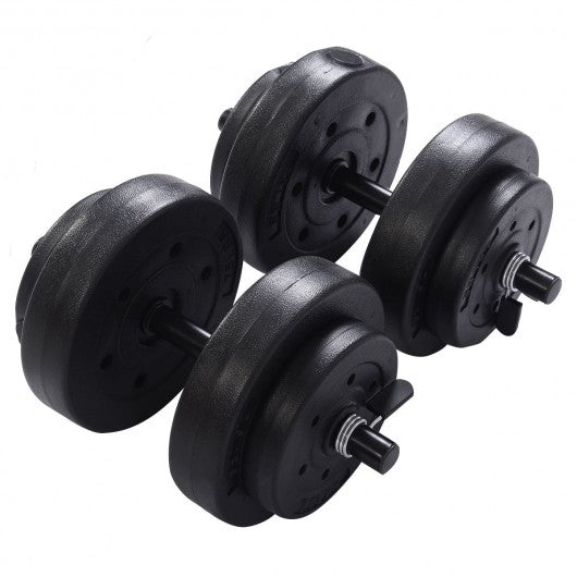 The Goplus 40 lbs weight dumbbell set is ideal for body workout at home or in the office which can keep you fit and healthy. It is designed to enhance your physical strength especially for your arm leg waist etc. It is suitable for basic strength exercises. There are four 7.5 lbs plates and four 2.5 lbs plates which reach maximum lift weights to 40 lbs. The buckles are included so that it could fix the plates. Besides the plates are made of environmental-friendly HDPE material. Enjoy your workouts with our new dumbbell set. Brand new and high quality Suitable for basic strength exercises Perfect for arms chest back and legs 40 lbs lift weight (four 7.5 lbs + four 2.5 lbs) Including buckles for fixing the plates Environmental-friendly HDPE material of plates Two tubular rods