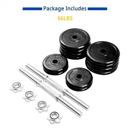 Specification: Bar material: Steel Plate material: Rubber Weight limit: 440 lbs Size of the bar: 17 inches x 25 mm (L x Diameter) Section number of bar: 1 Package includes: 8 x 5.5 lbs plates 4 x 2.75 lbs plates 1 x bar