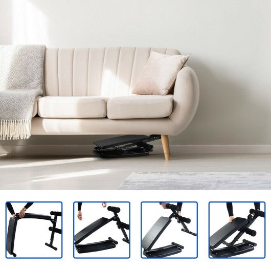 This adjustable arc-shaped folding sit up bench will make workout more efficiently. With ample padding and heavy duty steel construction this sit up provides stability for exercise and fitness. The height can be adjusted from 22 to 27.5 inches. The two pieces pads are convenient for using and folding which will save space for your gymnasium. It is ideal to more easily emphasize lower abdominal muscles and the ABs you want. It is idea for commercial light institution and home use. Welcome! Don't hesitate to buy it! High quality and brand new Sturdy and durable Adjustable and folding arc-shaped sit up bench Idea for commercial light institution and home use Heavy-duty steel construction for sturdy Thick wide and scientifically designed bench for more efficient workout Multifunctional machine stretching ABs leg work out push up and back sit up