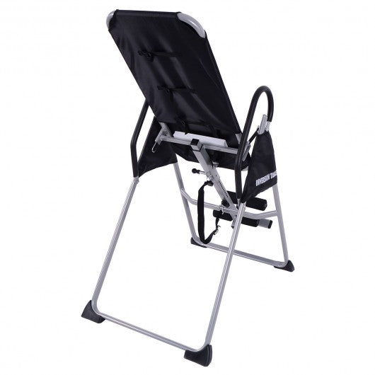 Specification: Color: Black + Gray Material: Steel + Nylon + PE Product weight: 46 lbs Product size: 47" x 23.6" x 55" Pad size: 19" x 43.5" For user height: 4.8' - 6.5' Max. user weight: 300 lbs Product includes: 1 x inversion table (need assembly)