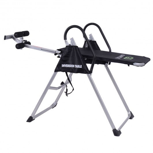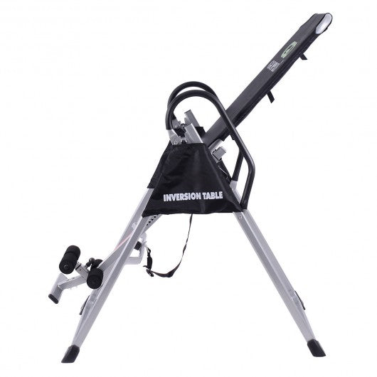This inversion table is a gravitational device that can help you in the required "inverted" state. With this inversion table you can relieve the stress on your lower back and relieve pressure on the discs and nerve roots. You can increase blood flow to your lower spine and increase body flexibility. It could improve blood circulation and posture and keep you a good health. There are 3 position roller hinges which allow speed control and rotation. Besides the table can be folded for easy storage. If you are looking forward an inversion table don't hesitate to buy it! High quality and brand new Heavy-duty construction and steel frame Decompresses spinal discs Reduces back pain Full 180 degree inversion Increases body flexibility Table is foldable for easy storage Fights fatigue E-brake offers convenience for some people with waist problem Nylon safety strap for assisted safety Easy to grip handles for safety and support