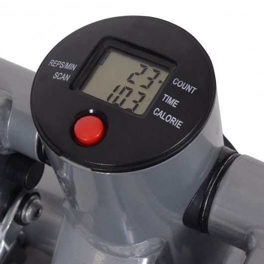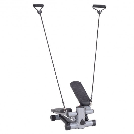 The mini stepper is an essential fitness device in your house. It's compact and lightweight enough to give you a full body workout from anywhere in your home or office. The mini stepper provides a great workout with very little money and it not only saves money but also is space saving. The resistance cords work your upper body while the steps work to tone the calves buttocks thighs and hips. The equipped computer helps keep track of your steps time and calories. The step motion height is adjustable to meet your demands. In addition there are skid resistant rubber floor protectors under the device. If you are looking for a stepper don't hesitate to buy this one home! Durable construction and space saving Compact and lightweight design Provides a low-impact aerobic work out Features nonslip pedals to ensure safety Features resistance cords to work your upper body LCD computer function: Scan time count total count calories Height adjustment knob adjusts the step motion height Skid resistant rubber floor protectors