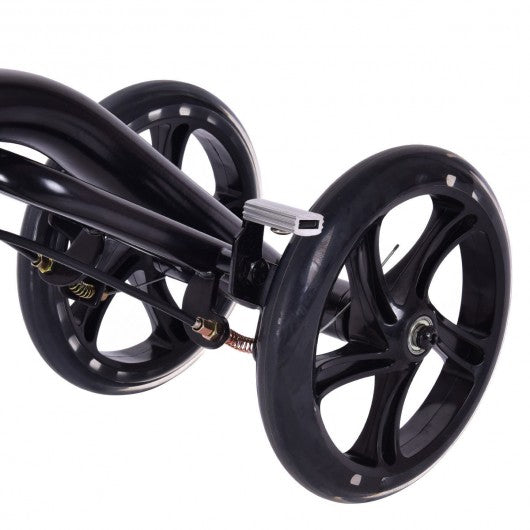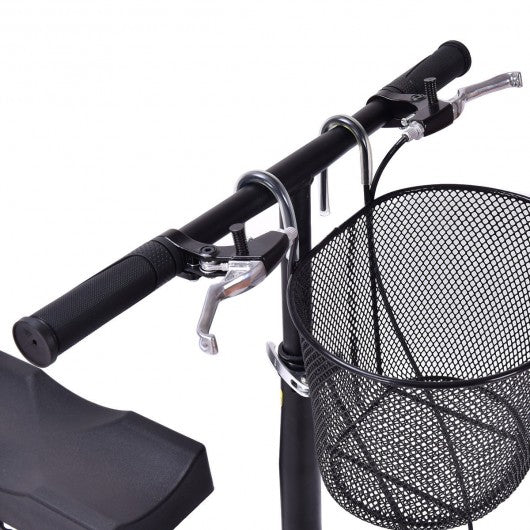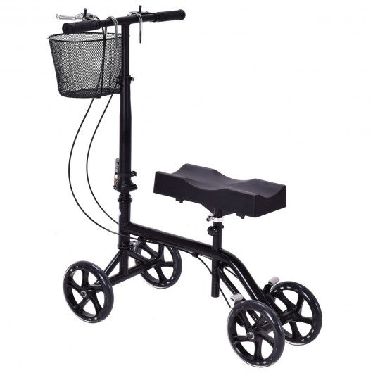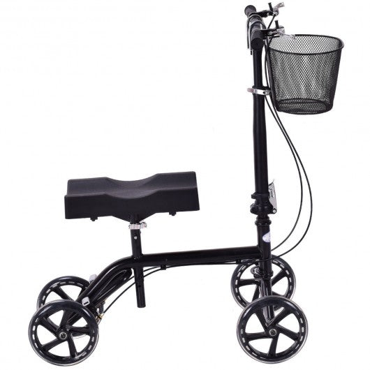 The steerable knee walker provides a more reliable and comfortable alternative to crutches for patients needing an effective mobility solution. The contoured channel allows your leg to fit comfortably and securely. It features a durable basket so that you could put stuff in. It is not only suitable for normal people but also foot (ankle or lower leg) injured person. The height of the seat and handlebar can be adjusted to fit people in various figures. The sturdy steel frame provides stability and durability. The knee walker is foldable without tools which means it�s space-saving and easy to storage. Heavy loading and durable frame Features a durable basket The thick knee cushion is comfortable and height-adjustable Deluxe two-hand braking system for safety The height of the seat and handlebar can be adjusted to fit people in various figures Sturdy steel frame provides stability and durability Ideal for individuals recovering from injury or surgery to the foot ankle and lower legs Folds without tools making travel storage or just getting around easier Attention: 1. Knee walkers are not designed or suitable for hip knee or leg wounded 2. Simple assembly is required according to the included instruction