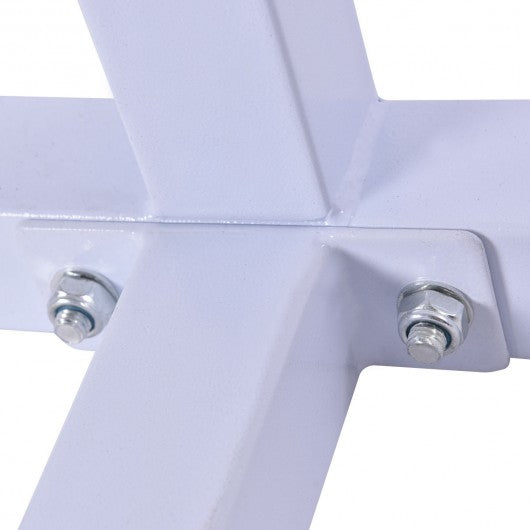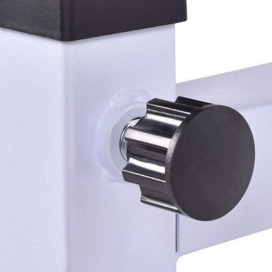 Specification: Color: White Material: Steel Rectangle steel size: 50 x 50 x 1.5 mm; 45 x 45 x 1.5 mm (L x W x T) Adjustable height: 27"-41.5" (5 levels) Thickness of seat: 2" Overall dimension: 37" x 18" x 41.5" (l x w x max h) Package includes: 1 x Curl weight bench 1 x Instruction Note: 1. Dumbbells and barbell are not included. 2. Simple assembly is required according to the included instruction. 3. Please consider the weight capacity before using dumbbells or barbell.