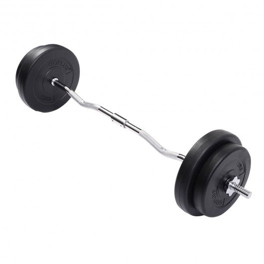 Specification: Color: Silvery curl bar + Black plates Material: Propene polymer (Plates) + Steel (Rod) Weight limit: 220 lbs Size of the bar: 47" x 25 mm (L x dia) Section number of bar: 2 Weights: 2 x 7.5 kg (16.5 lbs) plates 2 x 2.5 kg (5.5 lbs) plates Package includes: 1 x Tubular rod 2 x 7.5 kg (16.5 lbs) plates 2 x 2.5 kg (5.5 lbs) plates 2 x Buckles