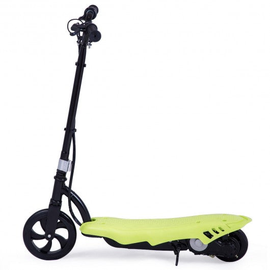 This electric scooter is designed for ages 8 and up which can support riders up to 200 lbs. The scooter reaches speeds of up to 7.5 miles per hour and provides up to 75 minutes of continuous use. Heavy-duty steel construction gives outstanding durability and toughness of the frame for long-lasting use. It has 3 Shifts switch with power-off protection and hand operated brake for smoother stopping power. The electric scooter will be a great choice for you. Come and buy it! Boasting a high-torque ultra-quiet chain-driven motor a handy twist-grip throttle and retractable kickstand High-performance motor with speeds up to 7.5mph Powered by a long lasting rechargeable 24V Seal battery system Features a hand operated rear brake spring loaded kickstand and large 6-inch PU tires for a smooth ride Recharge time: 6 - 8 hours even if the light turns green. Recommended maximum charging time is 8 hours Recommended for ages 14 and older (155 pounds max weight)