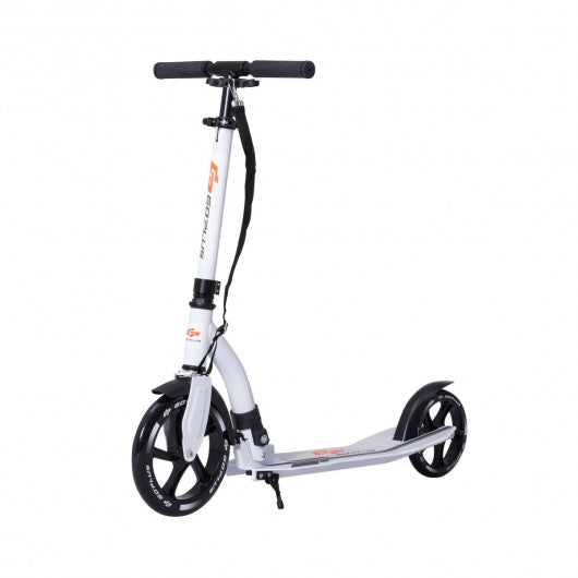 Adjustable Foldable Aluminum Kids Kick Scooter w/ Shoulder Strap-White