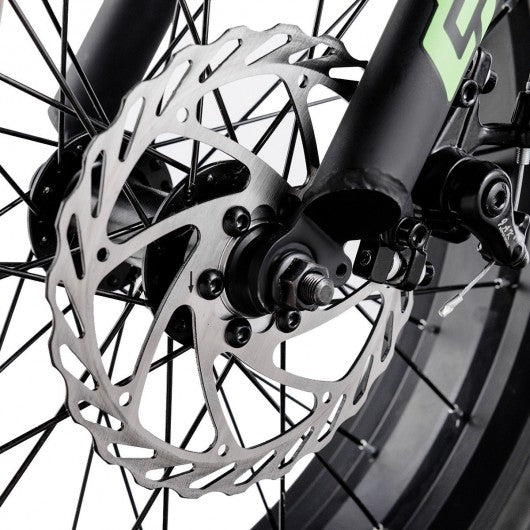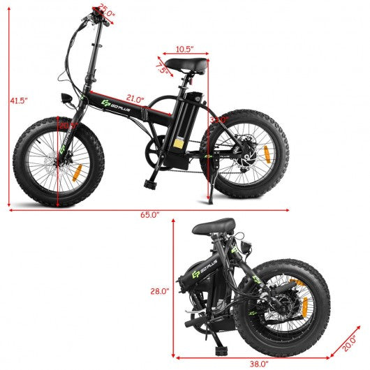 This folding electric bicycle is made of lightweight yet strong aluminum. It will serve your for years. The mechanical front and rear disc-brake design and 7-speed Shimano professional transmission system give smooth and safe ride. The 48 V/10 AH lithium battery 20" fat tire and 2 working modes provide you with better riding experience. This bicycle has two modes. With the e-bicycle mode you do not need to ride with the assisted mode you can do some exercise. The folding electric bicycle will be your great choice do not hesitate to buy it! Adopts lightweight yet strong aluminum Anti-rust and anti-exposure painting material 48 V/10 AH lithium battery supports 20 mile (E-Bike Mode) ridding Smart lithium battery charger has fast charging (5 hours.) High-volume 4" tires mounted to 20" rims allow maximum traction and smooth ride Anti-slip thick tire is great for rainy or snowy mountain way and road way Foldable design saves much space for your daily use Mechanical front and rear disc-brake design puts control and safety at your fingertips 7-speed Shimano professional transmission system provides great climbing ability Has e-bicycle mode and assisted mode LCD display can show you 5 different assist adjustment