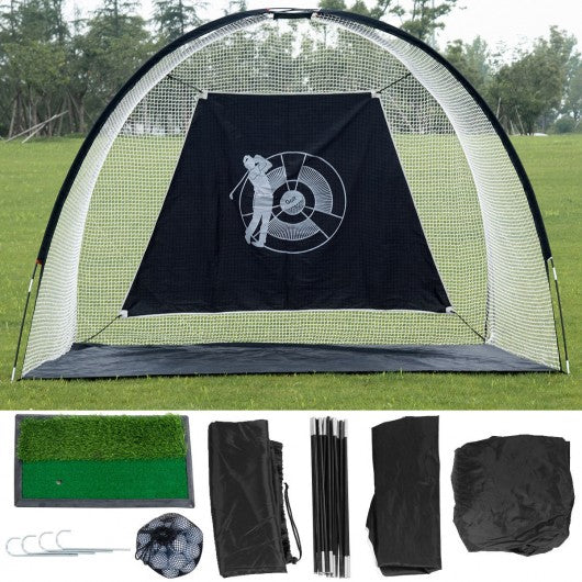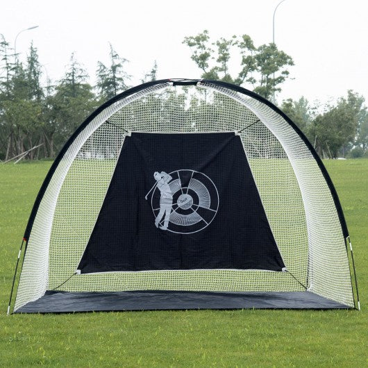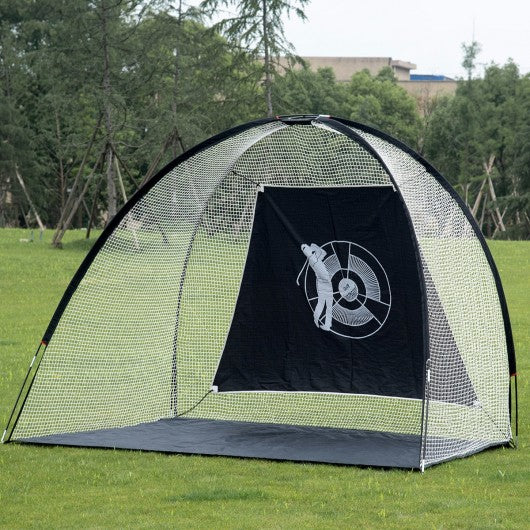 There is no more limitation for you to improve your golf skill and enjoy your favorite sport with this golf net. This golf nets with rugged durability and premium quality offer a player unparalleled performance. They are designed for both indoor and outdoor use. It�s easy to set up for hitting practice in minutes. The shock-corded fiberglass poles with protective sides can stop wide shots. It includs golf net storage bag ground stakes and durable long life nylon mesh net with backdrop target. It is free standing and easy to set up. Your can take golf driving range anywhere in a bag for it's light weight and small in size when closed. If you are looking for such a golf practice set don't hesitate to add it to your cart. Sturdy and durable: This golf practice set adopts the super strong 700d mesh and the 11mm fiber poles and it also includes the ground nails which make it windproof and more solid. The structure follows the scientific principle and could give you excellent using experience. Easy to collect: The golf practice set comes with 210d polyester floor and three sides of mesh all shots will be collected in the cage polyester floor collects golf balls for easy pick up. Easy to set up: The golf net can be finished the installation within few minutes according to the specification. Portable design: Foldable design which could make this item portable and save storage space. It included carry bag and you could take this item to everywhere you want it's ideal for indoor and outdoor practice. Perfect choice for practicing golf: This golf practice set is designed with large hitting area and target sheet this golf net can better improve your swing ball striking and strength and it's designed of both indoor and outdoor use. It can help you become a professional golf player.