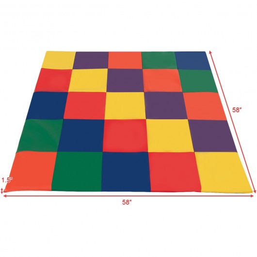 Specification: Color: Red + Green + Purple + Yellow + Blue + Orange Material: PVC leather + Sponge foam Net weight: 9 lbs Overall dimension: 58’' x 58" x 1.5" Package includes: 1 x Mat