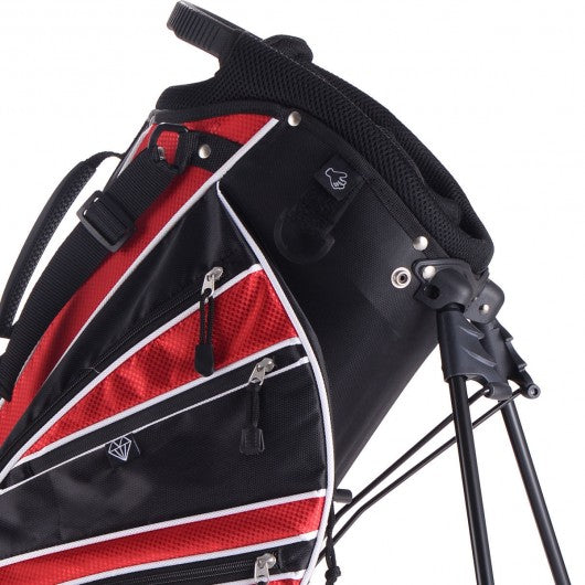 Golf Stand Cart Bag with 6-Way Divider Carry Pockets-Red