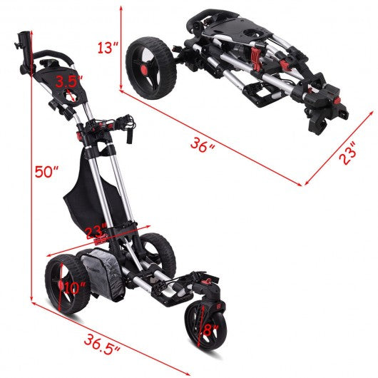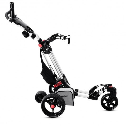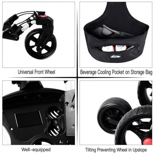 This electric golf cart with plenty of features and functionality is a perfect partner for storage or transport. It has been designed to include a series of outstanding features that provide you with desirable benefits to make your life easier on the course and offer you a healthy alternative to conventional golf carts. It features no cost accessory pack including umbrella holder and scorecard holder. This electric golf cart are propelled by rear wheels which are on sides so the cart does not lose traction uphill nor does it spin the front wheel while lifting or turning. And it adopts the 12 V 18 AH lithium battery and a powerful 120 W very quiet electric motor. This electric golf cart can be folded so that it's convenient for you to storage or transport it. Don't hesitate to buy it! Powered by a high performance 12 V 18 AH lithium battery and a powerful 120 W electric motor Rotate the speed dial to change the speeds and LED display shows 9 speeds High quality iron construction gives a lasting positive experience Propelled by rear wheels which ensures perfect balance and traction on all types of terrain Two big real wheels on the sides and two small wheels on the front and back TPR handle with comfortable cushioned grips Included umbrella holder and scorecard holder Can be folded to compact size and easy to carry and store