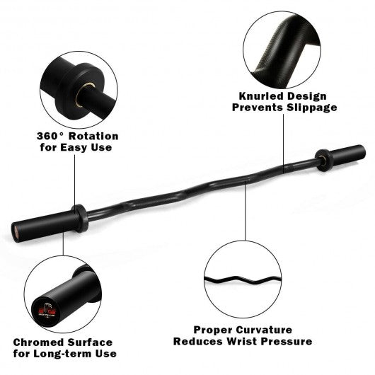 If you want to have a healthy body and want to shape the perfect muscle curve or want to get fit without going to the gym. This bar for you. The Olympic bar is the top choice for home gyms commercial gyms club owners and power lifters. Made to facilitate for easy workout sessions this workout bar features a cambered design and can help avoid any un-due tension in the wrists and forearms. Designed with comfortable knurl and 400 lbs load capacity this bar is perfect for you to build power and muscle. Made of high quality Q235 steel with chromed surface this bar is extremely durable and does not rust easily. 2 pcs copper sleeves and bearings can increase the rolling lubrication of the sleeve for ease of use. Don't hesitate come to buy one! Q235 steel cold forging and quenching technology make the rod durable and sturdy Chromed surface gives it the desired look and makes it durable Curved design helps reduce muscle stress The knurled handles adds friction and grip and has anti-slip properties The 47" length and 400 lbs load-bearing capacity help you exercise better Copper sleeves and bearings solve inertia and prevent wrist injuries No rust or deformation after 1 year of normal use Ideal for bench presses bicep curling piggybacking overhead pressure or lunge
