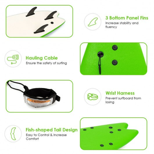 5'5" Ocean Foamie SurfBoard with Rope and 3 Fins-Green