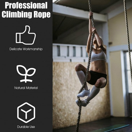 This is the climbing rope which is specially designed for people who need to improve grip skill and strength muscle. It is made of durable three strands of jute. Its diameter is 1.5 inches which will give you the best grip. The top of the climbing rope has a ring knot so that it can be easily mounted to any sturdy anchor point without mounting brackets. And the heat shrink end caps prevent the rope from fraying over time it increases longevity. This climbing rope can be used for physical training burning fat and beautifying the body lines. This is an excellent tool to help you improve your physical fitness and maintain a healthy living. Don't hesitate to buy it! Black rubber sleeve on the end enhance grip and protect your hands Heat shrink end cap sleeve protects against friction and fray Ring knot allows you install without mounting brackets 3-strand twisted jute rope makes it not easy to wear and keep it firm It�s an ideal climbing rope that works muscles of whole body Used for various exercise like climbing up-down waves tug-of-war etc. Suitable for both men and female young and old to exercise and play The rope can be easily rolled up for storage and carrying