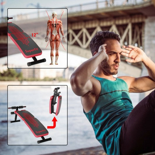 The utility bench adjusts to incline decline upright and flat positions. The multi-position bench makes it convenient and easy to tone and define muscles while specifically targeting upper and lower abdominal pectoral and other muscle groups. Burn calories lose weight tone/define your muscles and increase your strength and stamina with our adjustable Utility Bench. Whether you are at home or the gym our abdominal trainer is your best choice! 3 adjustable levels suitable for people of different heights The durable iron frame provides more stability and safety Foam-covered rollers for relieving fatigue effectively Rotatable & wider seat cushions give you a more comfortable experience Perfect for exercising hips buns thighs arms etc Ideal for beginners and more advanced users