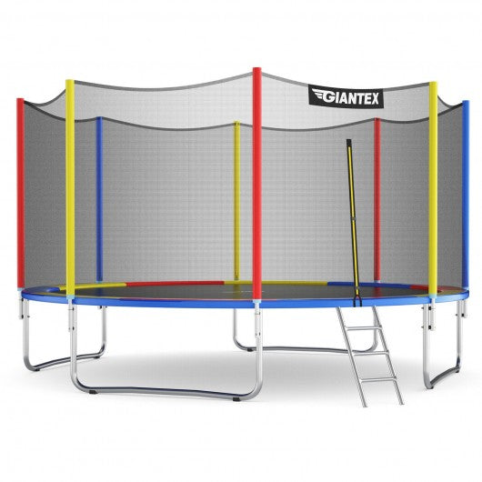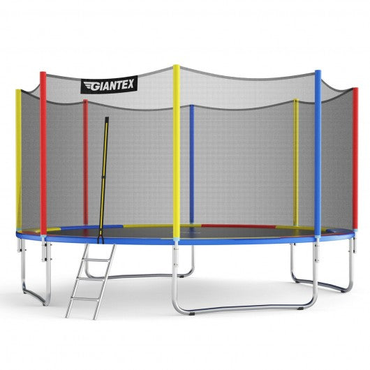12Ft Trampoline with Safety Enclosure Net and Ladder Outdoor for Kids Adults