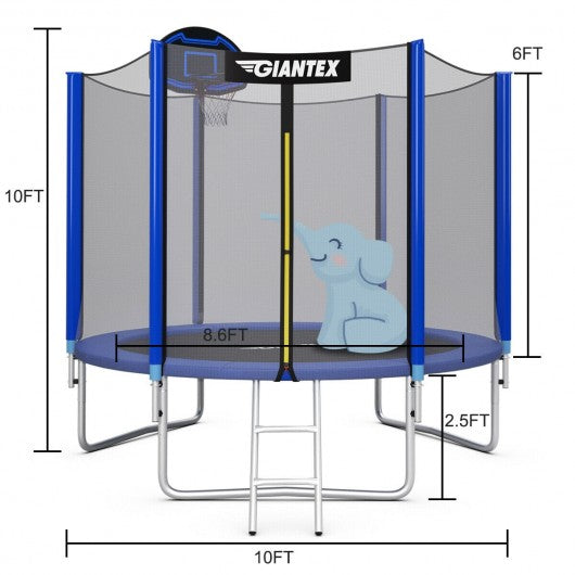 10FT Round Trampoline with Safety Enclosure Net-10'