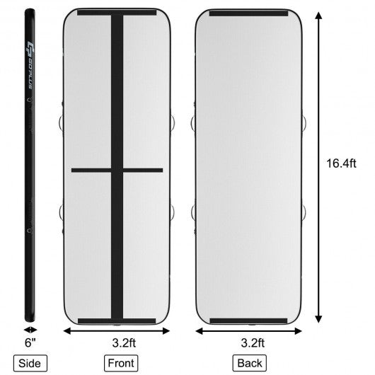 Air Track Inflatable Gymnastics Tumbling Mat with Pump-Black