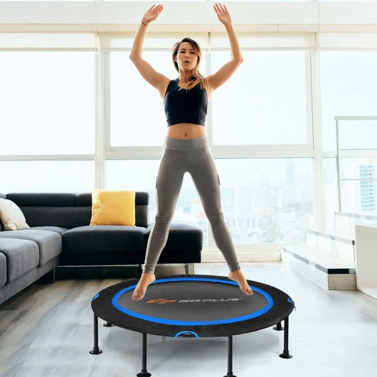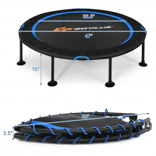47" Folding Trampoline Fitness Exercise Rebound with Safety Pad Kids and Adults-Blue