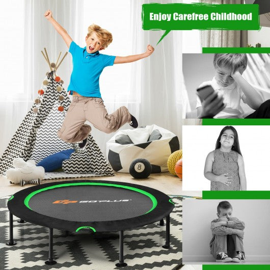 47" Folding Trampoline Fitness Exercise Rebound with Safety Pad Kids and Adults-Green