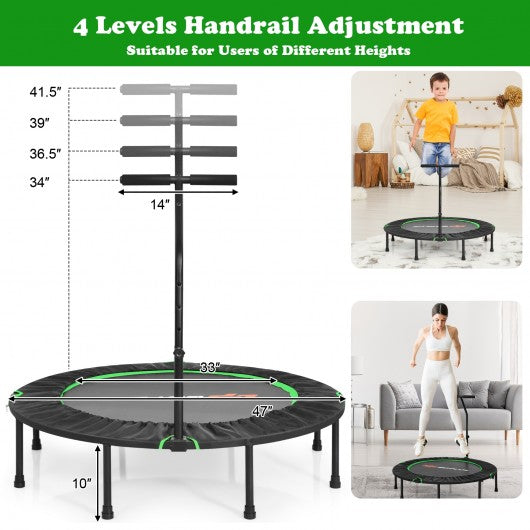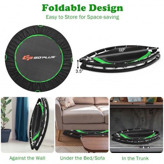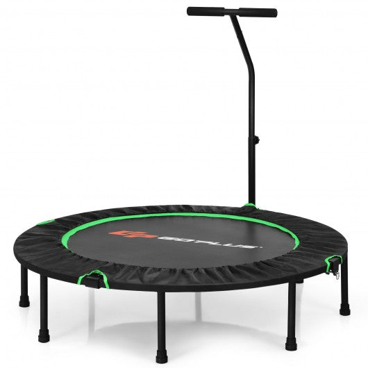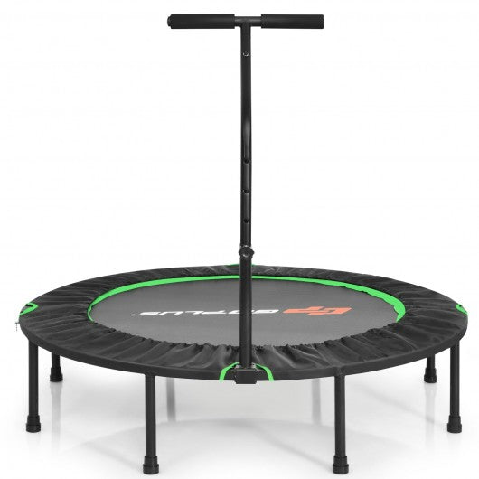 47" Folding Trampoline Fitness Exercise Rebound with Handle for Adults and Kids-Green
